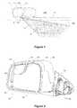 In a preferred form, themirror assembly10 provides aconventional mirror surface30 that is flat or slightly convex for providing a driver of the vehicle with a rearward field ofview4 through angle α. The radius of curvature of theconventional mirror surface30 is governed by international regulations. In some countries the radius of curvature may be a minimum of 600 mm, although typically it is around 1200 mm. Themirror assembly10 also provides an integrated spotter (blind spot)mirror surface32 for providing the driver with a rearward field ofview3 extending through angle β (i.e. encompassing the blind zone of the vehicle1). In this manner, the field ofview3 of thespotter mirror surface32 enables the driver to view objects that are not generally observable in the field ofview4 provided by theconventional mirror surface30. Objects that appear in the vehicle'sblind spot3 which are not observable in theconventional mirror surface30 will appear in thespotter mirror surface32. In some embodiments the field of view of thespotter mirror surface32 may overlap partially the field ofview4 provided by theconventional mirror surface30. The radius of curvature of thespotter mirror surface32 is typically 200-500 mm although this parameter is not typically governed by regulations. The radius of curvature of thespotter mirror surface32 will typically be less than the radius of curvature of theconventional mirror surface30 and therefore thespotter mirror surface32 will provide a wider angle view than theconventional mirror surface30. However, there may be embodiments where thespotter mirror surface32 is flat (planar) or the radius of curvature of thespotter mirror surface32 is the same as the radius of curvature of theconventional mirror surface30.