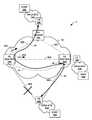 The effect of such topology changes is that L2 state information previously learned by PE routers16 of the VPLS domain regarding Media Access Control (MAC) addresses forVPLS site14A as being reachable throughPE router16A is no longer current. In BGP-based VPLS operation, whenPE router16A detects a loss of connectivity or loss of DF election,PE router16A sends to its BGP peers a BGP control message having a Down bit (“D-bit”) notification. In conventional BGP-based VPLS operation, when a PE router receives the D-bit notification, the PE router flushes all MAC state learned from the sending PE router. If a link such aslink26A “flaps” (i.e., goes up and down repeatedly in a short time span), the DF election will pass repeatedly fromPE router16A toPE router16B, and this will trigger repeated flushing of MAC state. This churn in the core ofSP network10 tends to consume a large amount of resources, which is typically undesirable. In addition, network traffic may be lost during the switchover process. The longer the switchover process takes, the more network traffic may be lost. Temporary loops may also occur insystem8 while switchover is being undertaken. Certain aspects of conventional switchover may also result in a phenomenon referred to as “double count,” where a device such asCE router18A may erroneously receive two copies of the network traffic.