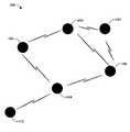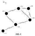 Nodes102,104,106,108,110, and112 are illustrated as configured in a peer-to-peer ad hoc topography. Each node can be within range of one or more other nodes and can communicate with the other nodes or through utilization of the other nodes, such as in a multi-hop topography (e.g., communications can hop from node to node until reaching a final destination). For example, asender node102 may wish to communicate withreceiver node112. To enable packet transfer betweensender node102 andreceiver node112, one or moreintermediate nodes104,106,108, and/or110 can be utilized. It should be understood that any node102-112 can be a sender node and/or a receiver node and can perform functions of either sending or receiving information at substantially the same time (e.g., can broadcast or communicate information at about the same time as receiving information).