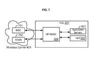 FIG. 7 illustrates High-Performance Short Message Service Center (HP-SMSC) interactions with elements of a wireless network;
