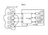 FIG. 8 illustrates Home Location Register (HLR) interactions with elements of a wireless network;
