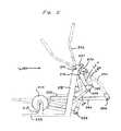 A rearward distal end of adrawbar330 is rotatably connected to the crankshaft333, and a forward distal end of thedrawbar330 is rotatably connected to a lower distal end of adrawbar rocker350 atshaft353. An upper distal end of thedrawbar rocker350 is rotatably connected to thestanchion398 atshaft367. A firstintermediate link360 has a first end rotatably connected to thehandle bar rocker340 atshaft345. Alobe344 rigidly connected with the handle bar rocker340 (and handle bar342) is provided for spatial purposes as will be evident in other illustrations shown and described herein. Continuing now, a second intermediate link370 (more clearly shown inFIG. 22) has a first end rotatably connected to thedrawbar rocker350 atshaft373. A second end of the firstintermediate link360 is rotatably connected to a second end of the secondintermediate link370 at ashaft365 that is fixedly secured proximate a first end of acontrol link392.