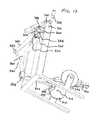 FIG. 12 is a perspective view of a third embodiment of the present invention adjusted for a minimum longitudinal foot path showing the crank oriented at a first crank position;