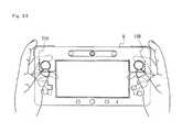 As shown inFIG. 32(a), the cross button (direction-input button)54A and thebuttons54B to54H, of theoperation buttons54A to54L, are provided on the front surface of thehousing50. That is, thesebuttons54A to54H are provided at positions at which they can be operated by the thumbs of the user (seeFIG. 33).