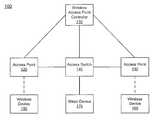 In some embodiments, the wirelessaccess point controller110 can receive and/or derive such control information based on control signals received from theaccess switch140, theaccess points120,130 and/or other portions (not shown) of thenetwork system100. For example, the wirelessaccess point controller110 can receive information associated with a topology of thenetwork system100 and, based on the topology, derive the control information. Additionally, in some embodiments, a network administrator can provide control information to the wirelessaccess point controller110. Based on such an input, the wirelessaccess point controller110 can implement and/or distribute the control information.