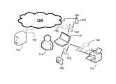 In this example,computing device110 also has a wireless connection throughaccess point120 tonetwork124.Wireless connection122 throughaccess point120 is an example of an infrastructure type connection. Any suitable technique may be used to formwireless connection122, including techniques that employ known infrastructure type protocols. As one example,wireless connection122 may be formed using a protocol sometimes called “Wi-Fi.” Though, the specific protocol used is not critical to the invention.