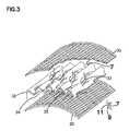 The first dieselparticulate reduction device26 can also be referred to as an upstream dieselparticulate reduction device26. An example upstream dieselparticulate reduction device26 is shown atFIGS. 2-5. Thedevice26 includes acanister27 housing a substrate (e.g., a honeycomb body) constructed from multiple layers offiltration material30 sandwiched between layers of corrugatedmetallic foil32. The corrugatedmetallic foil32 defines elongated passageways34 (i.e., channels) that are generally parallel to a net flow direction7 of exhaust gases through the particulate reduction device. Themetallic foil32 preferably includes structures that generate turbulence for ensuring that mixing occurs within the substrate. In the depicted embodiment, the structures includeopenings33 and flow diverting surfaces35 (i.e., mixing surfaces, deflecting surfaces, mixing shovels, flow diversion structures or like terms). Theflow diverting surfaces35 cause some flow to be diverted within thepassageways34 from the net flow direction7 totransverse directions9 andradial directions11. At least some of the diverted flow travels through theopenings33 betweenadjacent passageways34 and through thefiltration material30. As the exhaust flow travels through thefiltration material30, at least some particulate material of the exhaust stream is captured by thefiltration material30. As shown atFIG. 5, the divertingsurfaces35 do not completely block/plug thepassageways34. This assists in keeping the pressure drop across thedevice26 relatively low.