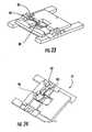 FIG. 23 illustrates further engagement of the T-pin with theinter-lock plate module77 whereby thePS3 inter-lock lever82 is now above theinter-lock ramp83. At this stage, since the bottom of the PS3 single surface platform is resting on a mating surface such as a gurnie, the inter-lock lock plate can translate motion to the inter-lock plate79 (in the direction of the arrow shown inFIG. 20) as long as the otherinter-lock plate block77 is disengaged in a similar manner.