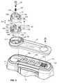 FIG. 4bis an enlarged, exploded top perspective view of the turret and a bottom perspective view of the cap shown inFIG. 3, illustrating the interior of the cap.
