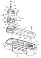 With reference toFIGS. 4aand4b, the illustratedturret110 includes four apertures130a-130dtherethrough, each spaced a substantially similar radial distance from thecentral axis118, and each spaced an equi-angular distance (e.g., 90 degrees) from one-another. Particularly, the apertures130a-130dare spaced from thecentral axis118 by the same radial distance as theinlet44 of theair passageway42, such that any one of the apertures130a-130dmay be aligned with theinlet44 of theair passageway42 depending upon the rotational position of theturret110. With reference toFIGS. 5-8, the bottom of theturret110 includes respective raised surfaces132a-132dsurrounding the respective apertures130a-130dthat selectively engage adepression133 in thecover34 surrounding theinlet44 of theair passageway42. The spring128 (seeFIG. 3) biases theturret110 toward thecover34 such that the respective raised surfaces132a-132dserve as locating features for the respective apertures130a-130din theturret110. Of course, other locating features can also be used.