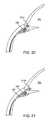 FIG. 21 shows theshunt105 implanted in the eye so as to provide a fluid pathway between the anterior chamber AC and the suprachoroidal space SS. Theshunt105 was implanted by “tunneling” the shunt toward the suprachoroidal space. That is, as the shunt is advanced toward the suprachoroidal space, the distal tip of the applier and/or the shunt penetrates the tissue and forms a tunnel through the eye tissue, initially the ciliary body. This differs from a procedure where the shunt is lowered into the eye via a scleral flap that is cut and folded back for access to the implant location. In such a procedure, the implanted shunt is positioned within a cavity that was formed by the folded-back flap. However, in the procedure shown inFIG. 21, theshunt105 is substantially enclosed or surrounded by eye tissue in the region between the anterior chamber and the suprachoroidal space. It also differs from the procedure known as cyclodialysis that in some cases entirely disinserts the ciliary body from the scleral spur to relieve the pressure in the anterior chamber, because essentially a puncture is made and the shunt device that is placed, is left in the position of the puncture.