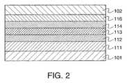 Next, a second layer312 was formed using NPB over the first layer311 by evaporation. The thickness of the second layer312 was set to be 10 nm. The second layer312 served as a hole transporting layer when each of the light emitting elements was driven.