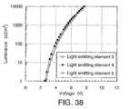FIG. 38 is a graph showing voltage-luminance characteristics oflight emitting elements3 to5;