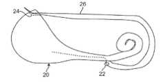 Referring now toFIGS. 2A-2B and3A-3C, one example of the removal features ofintragastric device18 is described.Retrieval tether28 is connected toretrieval ball30 and is cast loosely in the periphery ofreversible member20, and more firmly in the central portion ofreversible member20.Retrieval ball30 may be the same as lockingbutton22 or may be a separate component ofintragastric device20.Anchor32 may also be provided, to prevent an undesired tearing ofintragastric device20 when tension is applied toretrieval ball30.