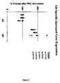 DETAILED DESCRIPTIONThe invention provides methods for diagnosing Alzheimer's disease (AD). These methods are based upon detecting changes in gene expression following activation of protein kinase C (PKC). Protein kinase C (PKC) is one of the largest gene families of protein kinase (Liu and Heckman,Cell Signal.1998; 10:529-542). Several PKC isozymes are expressed in the brain, including PKC, PKCβ1, PKCβ2, PKCδ, PKCε, and PKCγ. PKC is primarily a cytosolic protein, but with stimulation it translocates to the membrane. PKC has been shown to be involved in numerous biochemical processes relevant to Alzheimer's disease. Deficits of PKC isoforms have been found in AD brain tissue and in fibroblasts from AD patients. PKC also activates TNF-alpha converting enzyme (TACE), which is an enzyme that is involved in the proteolytic conversion of membrane-bound amyloid precursor protein (APP) to its non-pathogenic soluble form, known as soluble APP-alpha or sAPPalpha (Alkon et al.,Trends in Pharmacological Sciences.2007; 28(2): 51-60; Hurtado et al.,Neuropharmacology.2001; 40(8): 1094-1102). These sAPPα-producing enzymes are referred to generically as alpha-secretases. Activation of TACE by PKC also reduces cellular levels of pathogenic Aβ, which is produced by cleavage of APP by the beta-secretase enzyme (BACE). This is likely due to the fact that the TACE cleavage site is within the Aβ domain of APP. Overexpression of PKCε has been shown to selectively increased the activity of endothelin-converting enzyme, which degrades Aβ (Choi et al.,Proc. Natl. Acad. Sci. USA.2006; 103(21): 8215-8220). Moreover, studies have demonstrated that one PKC activator, bryostatin-1, reduces the levels of soluble Aβ and enhances recent memory (Etcheberrigaray et al.,Proc Natl Acad Sci USA.2004; 101(30):11141-6; U.S. Pat. No. 6,825,229).