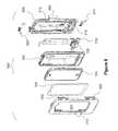 When thesmart phone160 is seated in the first receptacle and mechanically connected with the computer module as an assembly, the assembly will sit squarely on the casing and will be latched in place by thebridge member318. To promote water tightness, closure taps shown more particularly inFIGS. 8E and 8F for fitting onto the casing are provided.