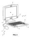 Referring toFIG. 3, a diagram of a communication device according to another embodiment of the present invention is shown. In this embodiment, thecommunication device14 is acomputer40 connected to thenetwork12, either through a wired or wireless connection (not shown). Thecomputer40 optionally includes one or more of the following; akeyboard42, adisplay44,speakers46, amicrophone48, acamera50 capable of generating still photos or video, amouse52, astart function element54 and anend function element56. Thecomputer40 is capable of running an email client, accessing an email client located on thenetwork12, or both. In various embodiments, the computer40 (i) is IP based, meaning it is designed to communicate over thenetwork12 using the Internet Protocol and (ii) runs one or more RVX protocols, including any of those listed above or any other near real-time communication protocol. Further, thecomputer40 could be a portable computer, such as a laptop or personal digital assistant, and is not limited to the desktop computer as shown. In addition, thedevice40 may optionally also locally run an email client, access an email client located on one of the servers16 located on thenetwork12, or be capable of both running and accessing email client on the network.