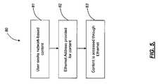 Referring toFIG. 5, aflowchart80 illustrates another exemplary embodiment of the present invention. A user seeks network-based content (step81). As described herein, this can include a user requesting VoD using a STB connecting to a network-based VoD controller, such as through an EPG. An Ethernet Address is provided for the content (step82). For example, the Ethernet Address can be embedded in the EPG. As described herein, the Ethernet information can be a normal Ethernet address or variations, such as Carrier Ethernet. Finally, content is accessed through Ethernet (step84). Here, the present invention alleviates the need to have an IP layer in an access/aggregation network, allowing content to be retrieved solely at the Ethernet layer.