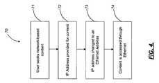 Referring toFIG. 4, aflowchart70 illustrates an exemplary embodiment of the present invention. A user seeks network-based content (step71). As described herein, this can include a user requesting VoD using a STB connecting to a network-based VoD controller, such as through an EPG. An IP address is provided for the content (step72). Once the request is made and processed, the network-based controller provides an address for the content. The IP address is changed to an Ethernet address (step73). Effectively, the present invention changes the pointer for the content from an IP address (and possibly with associated higher layer information) to an Ethernet address (and associated higher layer information possibly including IP addressing with Internet applications).