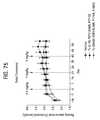 FIG. 37 is a diagram graphically depicting the study design for a six-week dose escalation study performed in Rhesus monkeys. In the figure, shaded symbols indicate blood draws in the fasted state and stippled symbols indicated blood draws in the fed state.