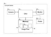 DETAILED DESCRIPTION OF THE PREFERRED EMBODIMENTSReferring now to the drawings, and initially toFIG. 1, there is shown a block diagram of acomputer system10 arranged and configured to perform operations related to images. ACPU12 is coupled to a device such as, for example, adigital camera14 via, for example, a USB port. Thedigital camera14 operates to download images stored locally on thecamera14, to theCPU12. TheCPU12 stores the downloaded images in amemory16 asimage files18. Theimage files18 can be accessed by theCPU12 for display on amonitor20, or for print out on aprinter22.