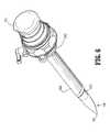 Raisedelements136 provide a penetrating function which is not as traumatic as a linear obturator blade but greater than a purely blunt obturator. Moreover, the relatively thin arrangement of raisedelements136 may provide on incising capability or may be configured to be atraumatic.Relief areas138 accommodate tissue which may be displaced during penetration of leadingpenetrating end124 thereby facilitating passage through tissue.Cylindrical portion134 defines a diameter which generally approximates the diameter ofcannula sleeve1008 to facilitate at least initial passage of thecannula sleeve1008 through tissue.