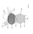 FIG. 28F is a schematic diagram of an example embodiment of the distal100 portion of a vascular treatment device being deployed across ananeurysm503 in vasculature. In contrast to a tubular device, for example, the deployment of adistal portion100 comprising bulbs and wide-mouthed necks9850 across the mouth of an aneurysm can allow for better wall apposition and/or reduce the risk of an endo-leak.