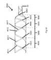 FIG. 28N is a schematic diagram of an example embodiment of thedistal portion9500 ofFIG. 6F deployed across ananeurysm9540,9550 in vasculature. Thedistal portion9500 may be useful, for example, for deployment of the small poresize middle segment9504 across a fusiformaortic aneurysm9540,9550 located in the infra-renalabdominal aorta9530, and not involving the aorto-iliac bifurcation, which can aid in thrombosis of theaneurysm9540,9950. Deployment of the high pore sizeproximal segment9506 and the high pore sizedistal segment9502 across arteries proximal and distal to theaneurysm9540,9550 can allow blood flow into these arteries, for example the distal bilateralrenal arteries9535,9545 and the proximal intercostal and lumbar arteries, which can inhibit or prevent occlusion and/or resulting dysfunction (e.g., lack of blood flow to the kidneys can lead to renal failure, occlusion of the intercostal and lumbar arteries could lead to bowel and bladder dysfunction, etc.). Thebulbs9503,9505,9507, the wide-mouthed neck9514 between thebulbs9503,9505, the wide-mouthed neck9516 between thebulbs9505,9507, the wide-mouthedproximal neck9518, and the wide-mouthdistal neck9512 of thedistal portion9500 can provide good wall apposition, which can inhibit or prevent the risk of an endo-leak into theaneurysm9540,9550. In some embodiments, the force/resistance (e.g., radial force) of the bulbs and/or necks is in a range sufficient to slightly expand the target vessel(s) in the range of about 0% to about 30%, and the shapes of the bulbs and necks are at least partially preserved. In some embodiments, the radial force of the bulbs and/or necks is in a range sufficient to appose the sidewalls of the vessel to inhibit or prevent an endo-leak, but not sufficient to expand the vessel, and the shapes of the bulbs and necks are no longer preserved such that the shape of thedistal portion9500 is substantially tubular, whether tapered or non-tapered, for example based on the shape of the target vessel.