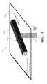 FIG. 28A depicts a simplified perspective block diagraph view of an electrically conductive antenna, in some embodiments, with a microstrip positioned relative to a fin and the pseudo-conductor strip.