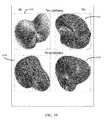 FIG. 38 is a perspective view of radiation patterns of thin and thick spiral embodiments of a pseudo-conductor antenna.