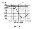 FIG. 5 shows a simplified graphical relationship between the sum of the TEM capacitance and the terminating capacitance relative to frequency, and antenna capacitance relative to frequency.