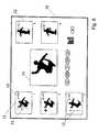 FIG. 7 shows a display with different key positions extracted from thevideo sequence11 superimposed on a common background build as a mosaic of the scene as spanned by the camera(s). Selected still pictures at key positions are overlaid at their original spatial location over said background to exemplify spatial and/or temporal relation between different still pictures at different key positions. When playing theoriginal video sequence12, the image of the current video position is overlaid over the scene background to further exemplify the relation of the current position of the video with the surrounding key positions. Alternatively, when playing the original video, the key position corresponding to the current instantaneous video position is highlighted in the mosaic. Selecting key positions on the mosaic triggers then display of metadata and/or repositioning inside the original video. In still another embodiment, pictures of key positions can be overlaid at their original spatial location over each image of theoriginal video sequence11.FIG. 8 shows a special embodiment where only past key positions are overlaid over the common background.