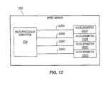 FIG. 13 illustrates an accelerometer-based speed sensor constructed according to the invention and which is suitable for use as both the speed and loft sensors ofFIG. 1;
