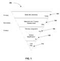 FIG. 1 illustrates a schematic diagram,100, for implementing combinatorial processing and evaluation using primary, secondary, and tertiary screening. The schematic diagram,100, illustrates that the relative number of combinatorial processes run with a group of substrates decreases as certain materials and/or processes are selected. Generally, combinatorial processing includes performing a large number of processes during a primary screen, selecting promising candidates from those processes, performing the selected processing during a secondary screen, selecting promising candidates from the secondary screen for a tertiary screen, and so on. In addition, feedback from later stages to earlier stages can be used to refine the success criteria and provide better screening results.