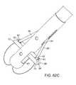FIG. 62C shows two flexible needles extending out of needle apertures and engaging the suture clasp arms.