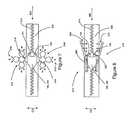In still other embodiments, the side panel tucker may be configured with conveyors that do not utilized vacuum forces to hold the first and second waist regions apart while the side panels are tucked into the chassis. For example,FIG. 12 shows pantdiapers100 received from afolding apparatus500, such as described for example in U.S. Pat. No. 5,779,831. It is to be appreciated that thefolding apparatus500 ofFIG. 12 could also be configured as apparatuses disclosed in U.S. Pat. Nos. 6,036,805; 6,113,717; 6,497,032; 7,175,584; 7,322,925; and 7,335,150 and U.S. Patent Publication Nos. 2008/0083489A1; 2009/0098995A1; and 2009/0094941A1. As shown inFIG. 12,pant diapers100 on thefolding apparatus500 are received between afirst conveyor502 and asecond conveyor504, each in the form of belt conveyors. Instead of utilizing vacuums to hold thediapers100, the first conveyor includesclamps506 that engage diapers and hold the diapers to thefirst conveyor502. Thediapers100 pass through a tucking zone508, represented generally by a dashed line oval inFIG. 12, wherein a side panel tucker, such as the embodiments described above, pushes the side panels into thechassis102. After the tucking zone, theclamps506 may be configured to release thediaper100. It is to be appreciated that various configurations ofclamps506 may be used.FIGS. 12A and 12B show an example configuration ofconveyor502 includingclamps506.FIG. 12A shows theclamps506 in a closed position, andFIG. 12B shows the clamps in an open position. As shown inFIGS. 12A and 12B, theclamps506 may rotate inwardly toward each other to a closed position along the belt of theconveyor502 when engaging and holding a diaper. Theclamps506 may also rotate outwardly away from each other to an open position along the belt of theconveyor502 when releasing a diaper.