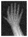 FIGS. 1A and 1B illustrate a raw X-ray image and corresponding adjusted image, according to an embodiment of the invention.FIG. 1A is a raw X-ray image of a child's hand with a birth defect (six fingers on one hand).FIG. 1B illustrates a scored pixel adjustment of the starting image. The adjusted image exhibits considerable enhancement and was generated according to an embodiment of the present invention.Feature102 inFIG. 1B shows clear enhancement of the bone structure as compared to the raw image ofFIG. 1A.