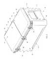 Thebottoms22 and42 of thecoolers10 and30 have a plurality of feet or supports102 located thereon (FIGS. 4-6 and23). A detailed view of the foot orsupport102 is illustrated inFIG. 19. Each foot orsupport102 includes a plurality ofapertures104. The feet or supports102 space the bottom of the cooler away from the surface that the cooler is placed on. A plurality of skid rails or bars103 are also located on the bottom of the cooler, as illustrated inFIG. 23. These feet and rails help to protect the bottom of the cooler from abrasion and other deleterious affects of interaction between the cooler and support surfaces. While a preferred embodiment of the invention utilizes four feet or supports102, any number of supports can be utilized on a cooler.