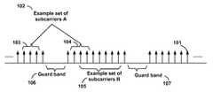 According to some of the various aspects of embodiments, subcarriers and/or resource blocks may comprise a plurality of physical subcarriers and/or resource blocks. In another example embodiment, subcarriers may be a plurality of virtual and/or logical subcarriers and/or resource blocks.