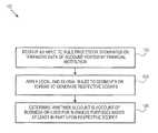 For example, referring toFIG. 1, amethod100 for determining whether an account is a business account or utilized for business purposes comprises, at102, receiving, at a rule engine or processor, an input in the form of account data such as a segmented or tokenized name or description of the account entered or selected by an account holder and/or segmented or tokenized transaction data (such as transaction amounts, transaction frequency, and electronic bill payment data) of the account. At104, the rule processor applies two different types of rules to the received input: “local” rules, which are applied to individual segments of the input, and “global” rules, which are applied to groups of segments of the input) while referring to heterogeneous data resources as applicable. Application of these different types of rules results in generation of respective local and global scores. At106, the rule processor determines, based at least in part upon the local and global scores, whether, or the likelihood or probability that, the account is account of a business or used for business purposes.
