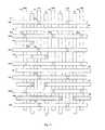 Signal line1374 has a similar routing path assignal line1373 except thatsignal line1374 passes through three single layer shielding meshes and two double layer shielding meshes on its way from logic A (1370) to logic B (1372). A first unshielded portion ofsignal line1374 extends from logic A and is routed to an area below the singlelayer shielding mesh1308. A connection via1354 electrically connectssignal line1374 from the first layer to the second layer which includes the singlelayer shielding mesh1308, from which point thesignal line1374 is routed in themesh1308 and into the doublelayer shielding mesh1316. In thismesh1316 thesignal line1374 is electrically connected through a connection via to a routing ofsignal line1374, again on the first layer, through an available gap in themesh1306 until it reaches an electrical connection via1357 within the doublelayer shielding mesh1314 which connection via1357 causes thesignal line1374 to be routed betweenlines1336 and1337, firstly in the doublelayer shielding mesh1314 and then in the singlelayer shielding mesh1304 untilline1374 reaches the connection via1358. At connection via1358, thesignal line1374 is routed to the first layer (from the second layer which includeslines1336 and1337) and extends away frommesh1304 into an unshielded region which includes connections to logic C, wheresignal line1374 connects to logic C to drive inputs in logic C (1372). It will be appreciated that the use of shielding meshes may allow higher power drivers (e.g. amplifiers) to be used to drive the signal lines which are shielded (e.g. lines1373 and/or1374).