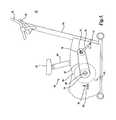 The present invention may also be utilized in conjunction with other types of exercise equipment, for instance anelliptical trainer24 as illustrated inFIG. 6. This apparatus includes a floor mountedframe100 on which is mounted an elevatablefront ramp102 for supporting the forward ends offoot links104 throughrollers106 axled to the front end of the foot links. The rear end of the foot links82 are coupled to the outer ends of crank arms108 sending outwardly from a crank shaft110 journaled in an upright support structure112. A flywheel114 is keyed, splined or otherwise coupled to the crank shaft92. Foot support plates116 are mounted on the upper side of the foot links104 for supporting the user's feet. A forward post structure118 extends upwardly and forwardly from theframe100 to support at its upper end ahandlebar assembly120 and a display/control panel122.