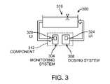 In some instantiations,setup300 can be self-contained, i.e., not require communication of monitor data to any devices outside ofmonitoring system304, anddosing system308 or communication of control data, for example, data needed to set operating parameters of the system, from any device outside of the monitoring and dosing systems. However, it is noted thatsystem300 can be outfitted with such external communications capability if so desired. In such cases, outside communications capability can be provided via any suitable wired or wireless technology available. In either case,monitoring system304 and/ordosing system308 can be provided with any suitable user interface(s), such asinterfaces320 and324, that allow(s) a user to control operating parameters ofsystem300.