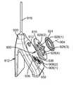 Chemical indicator disc816 includes anoptional filter924 that covers flow passages in the disc, here four flow passages928(1) to928(4) that allows water to flow from one side of the disc to the other. While four flow passages928(1) to928(4) are shown, more or fewer passages can be provided to suit a particular design. Each flow passage928(1) to928(4) can be enhanced with one or more features that assist the flow of water therethrough whendisc816 is being rotated by monitoringunit812. For example, when monitoringunit812 is rotatingdisc816 in a counterclockwise direction when looking toward the monitoring unit alongrotational axis904, the flow assisting feature(s) of each flow passage928(1) to928(4) can pull water into the space between the disc and monitoring unit. In this example,filter924 is used to filter the water being pulled into that space. This can be beneficial to reducing the amount of light-scattering particulate and/or other matter in the water present in that space during measurement readings, which in turn can increase the accuracy of the readings. In one scenario, monitoringunit812 can be programmed to perform a flush cycle in which it spinsdisc816 for a predetermined amount of time and a predetermined speed (and direction) sufficient to pull water into the space between the disc and the monitoring unit just prior to taking one or more measurement readings. Since the water being pulled in is being filtered byfilter924, during the immediately subsequent reading(s) the water in that space is as clean as practicable. It is noted that flushing can also be beneficial in embodiments not including any filters (such as filter924) and that one or more filters are useful outside the context of flushing.