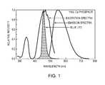 FIG. 1 is a graph of emission and excitation spectra of an exemplary LED and phosphor;