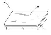 According toFIG. 2, thetop portion14 can include theinner lid portion80 and theouter lid portion82. Theinner lid portion80 can be a sheet of at least one material having an overall thickness T1 and an outerfirst periphery84. The outerfirst periphery84 is shaped and sized to be sealably attached to the firsttop surface45 of the inner recessedflange portion42 of thebottom portion12, as shown inFIG. 4. For example, the outerfirst periphery84 can be sized and shaped to be substantially identical to the shape and the size defined by theinner flange wall46 so that portions of theinner lid portion80 can engage, or at least be disposed proximate to, theinner flange wall46. The thickness T1 of theinner lid portion80 can be about the same distance as the recessed distance D1. To this end, when theinner lid portion80 engages the firsttop surface45 of the inner recessedflange portion42, theupper surface85 of theinner lid portion80 can be substantially coplanar with the secondtop surface47 of theouter flange portion44, as shown inFIG. 4.