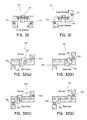 FIGS. 37(a) and37(b) are top views, partly in section, of a ninth alternate embodiment to the access device shown inFIG. 1, the access device being shown with its slide in its distal and proximal positions, respectively, the access device also being shown without one of its two housing portions and without its protective sleeve;