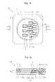 As shown inFIG. 34, theLED chip21 in thefirst opening121 is disposed such that theelectrode211 connected to the n-type semiconductor layer lies on the left side inFIG. 34 and theelectrode212 connected to the p-type semiconductor layer lies on the right side inFIG. 34. Although not shown inFIG. 34, thebonding pads14aare arranged on the left side of theLED chip21 and thebonding pads14bare arranged on the right side of theLED chip21. A portion of the wiring pattern on thesubmount substrate22, which is connected to theelectrode211, is connected to thebonding pads14avia thewires3. A portion of the wiring pattern on thesubmount substrate22, which is connected to theelectrode212, is connected to thebonding pads14bvia thewires3. Accordingly, like the LED module A8, theelectrodes211 and212 make conductive connection with the mountingelectrodes151 and152, respectively.