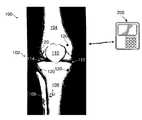 In the context of the present disclosure, soft tissue is intended to include ligaments, tendons, cartilage, menisci, and other soft tissue of a joint. In some embodiments particular attention will be given to one or more of the specific types of soft tissue. However, this is not to be considered limiting. For example, as described above with respect to the knee joint102 particular attention was given to the articular cartilage and menisci. In that regard, thesystem100 has been described as being particularly configured to monitor changes in the articular cartilage and menisci. While thesystem100 has been described in this manner, it is understood that thesystem100 may be configured to monitor other soft tissue of the knee joint102, including but not limited to the anterior cruciate ligament (“ACL”), medial collateral ligament (“MCL”), posterior cruciate ligament (“PCL”), lateral collateral ligament, and/or patellar tendon. Further, though thesystem100 has been described with respect to the knee joint102, the system may be used with other joints, such as a hip, an ankle, a shoulder, an elbow, a wrist, and/or other joint.