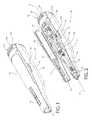 In the embodiment ofFIGS. 22A-22E, for example, the cartridge coverrelease safety mechanism232 is configured to be operated by the function of the drive control mechanism. Therelease actuator234 is configured to slide in the proximal direction in order to release to cartridge cover (not shown) from thehousing236. The cartridge coverrelease safety mechanism232 include alocking pin238 that is adapted to move between an obstructing position that prevents movement of therelease actuator234 in a proximal direction (as shown inFIGS. 22B-22D), and a retracted position that allows movement of therelease actuator234 in a proximal direction (as shown inFIGS. 22A and 22E).
